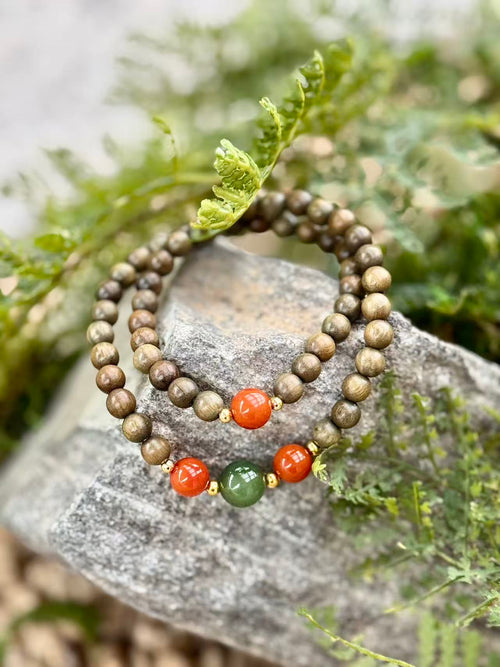 Green Sandalwood, South Red Agate & Jade Double-Wrap Bracelet
